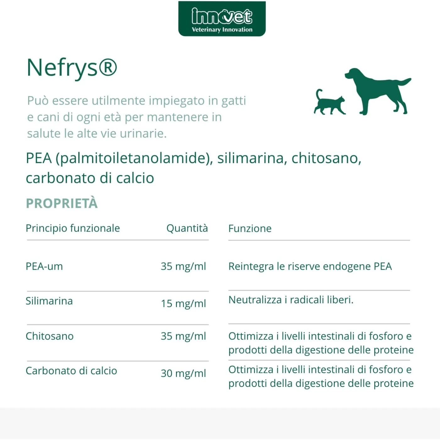 Innovet Nefrys® Integratore per Cani e Gatti 100ml, utile per il benessere delle alte vie urinarie nel cane e nel gatto.
