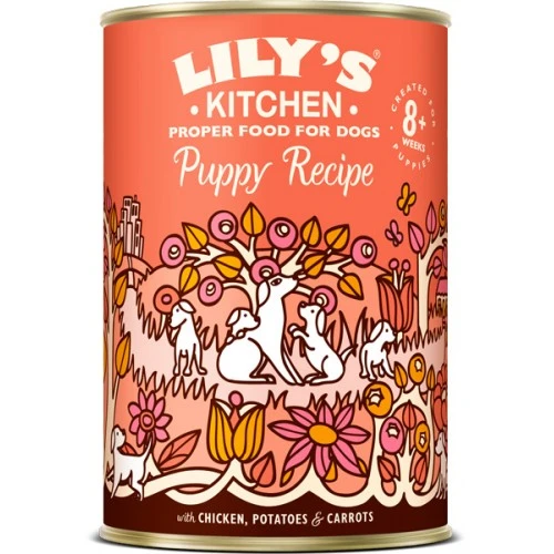 Lily’s Kitchen Puppy Recipe 400 gr o Chicken Dinner for Puppies 400g è un alimento umido completo per cuccioli. Il suo complesso nutrizionale rende questo prodotto facilmente digeribile e altamente appetibile. Gli ingredienti biologici di prima qualità rendono questo prodotto molto gustoso e adatto a preservare la salute del nostro amico a quattro zampe.