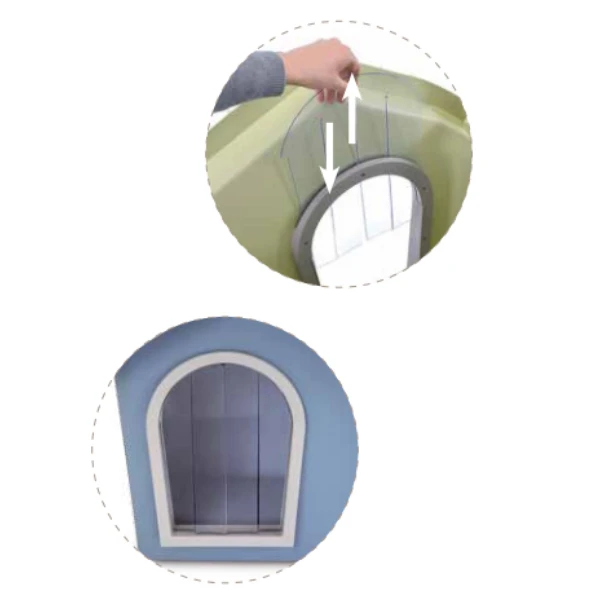 - facile da montare, la porta infatti va inserita nella fessura in alto sulla facciata della cuccia, basterà dunque farla scorrere dall’alto verso il basso e viceversa per consentire apertura e chiusura